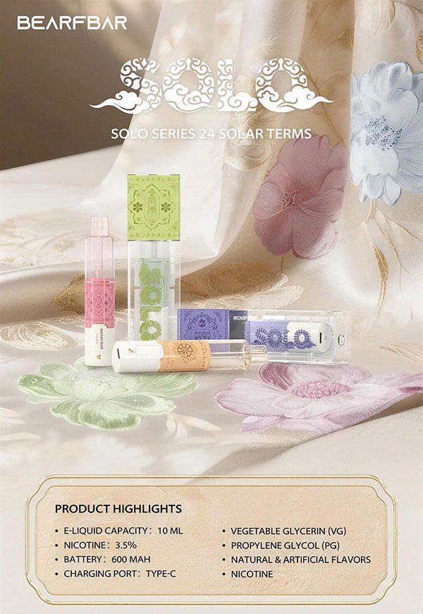 【一次性】正品比熊Bearfbar Solo 15000口一次性电子烟-16.8W大功率输出-24节气元素设计